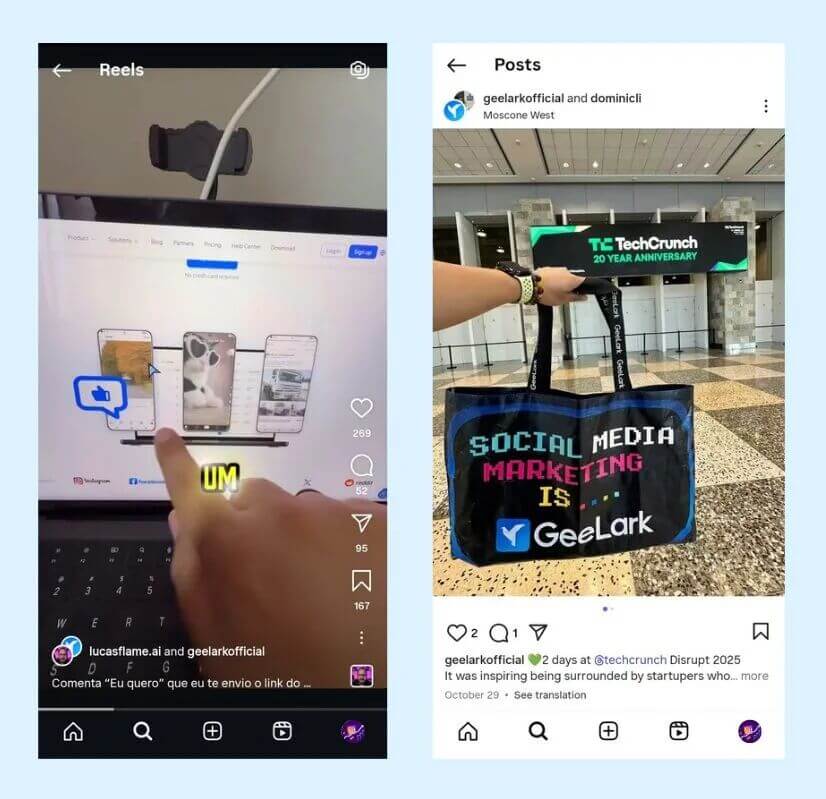 Reels 旨在帮助用户发现新内容。Reels 会面向许多尚未关注你的用户,这使得 Reels 成为触达新受众的核心之一。